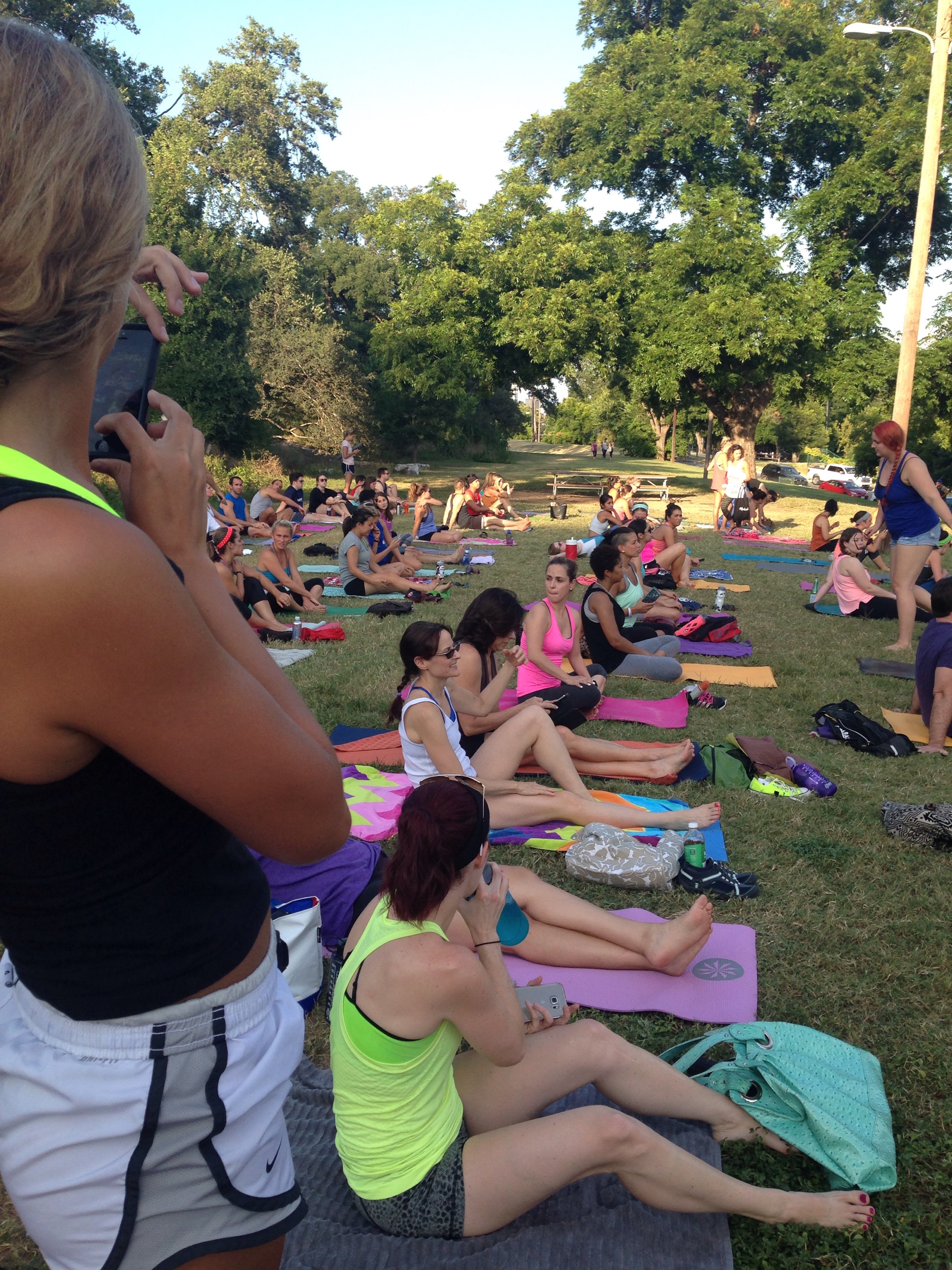 We followed up with my Monday crossfit class, one that involved a seriously dehydrating stint in the roof of my building at 6 p.m. (great view of the Greenbelt though!) After torturing my physical therapist sister with 45 minutes of aggressive overhead shoulder presses and endless squats, it was time for yoga.