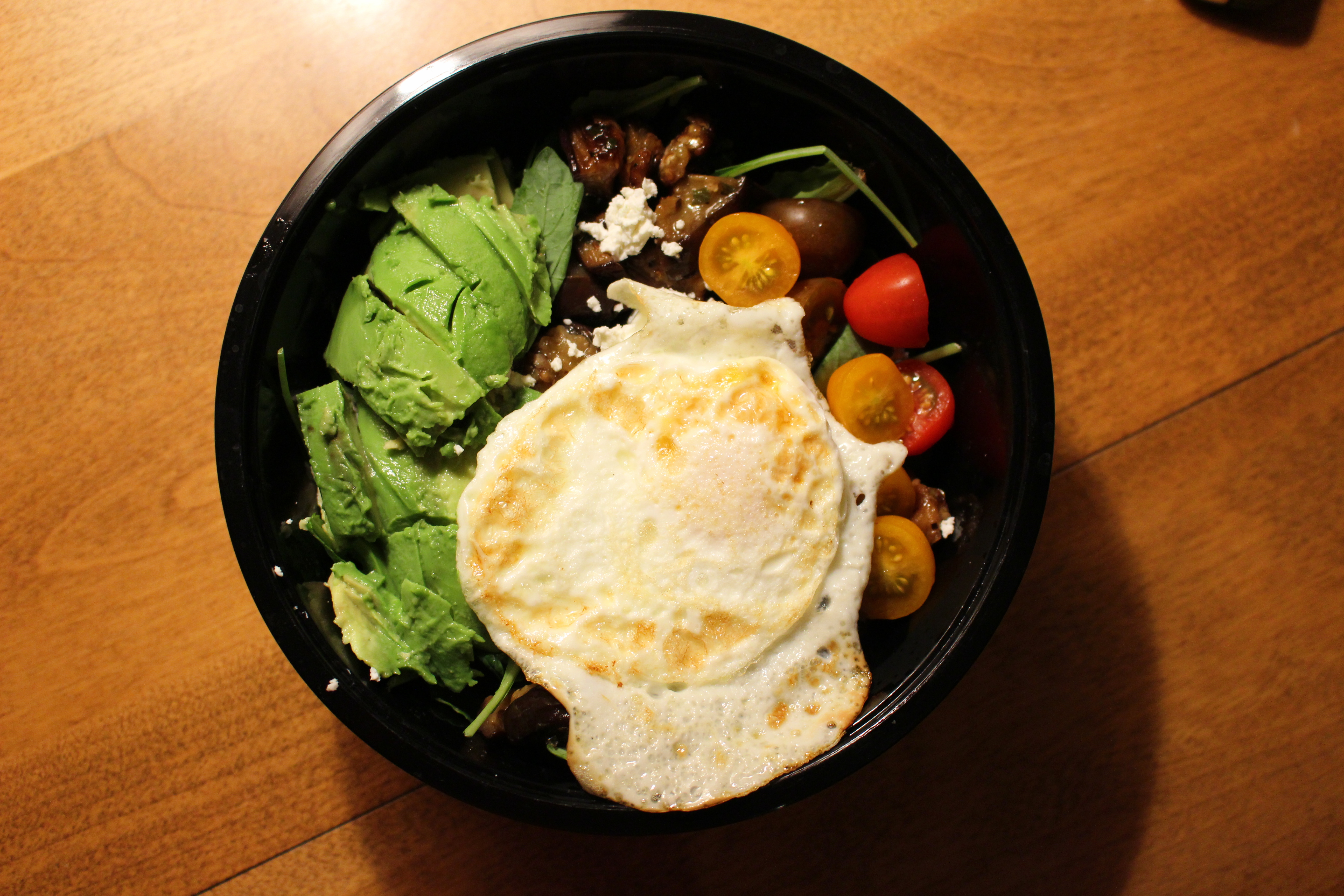 - I then proceeded to add my other kitchen sink items: avocado, of course, the tomatoes and a slightly runny fried egg to top it off.