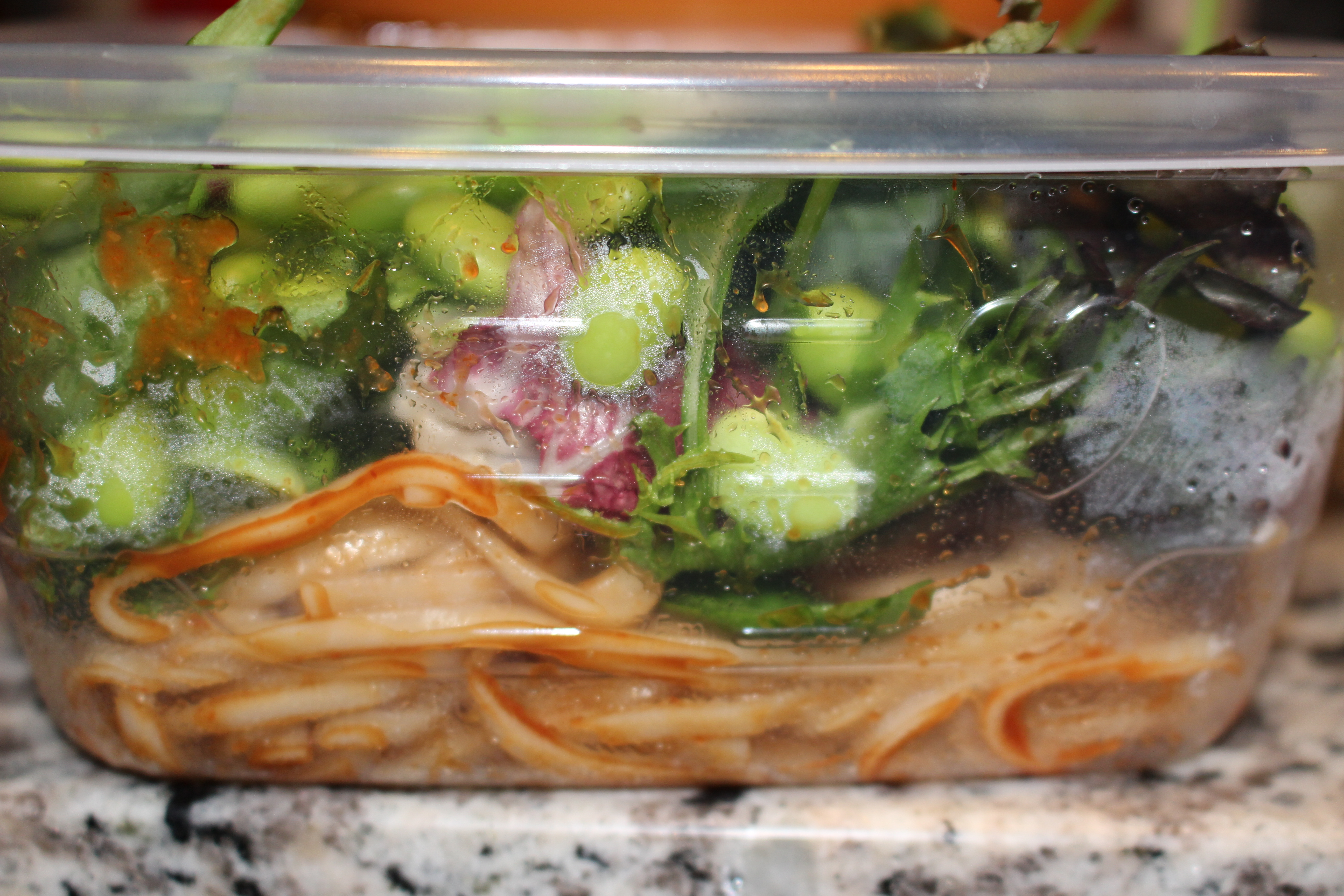 - You start with the noodles. Good udon noodles are easy to find at any grocery store; vermicelli ones are equally ubiquitous. You can boil them the morning of with minimal time allowances or cook them the night before. The important thing is to season them. I’ve been addicted to the hoisin sauce + sriracha combo, but fish sauce and thai chili sauce work well here too. While the noodles are still hot, mix them with the sauces to integrate the flavor throughout.