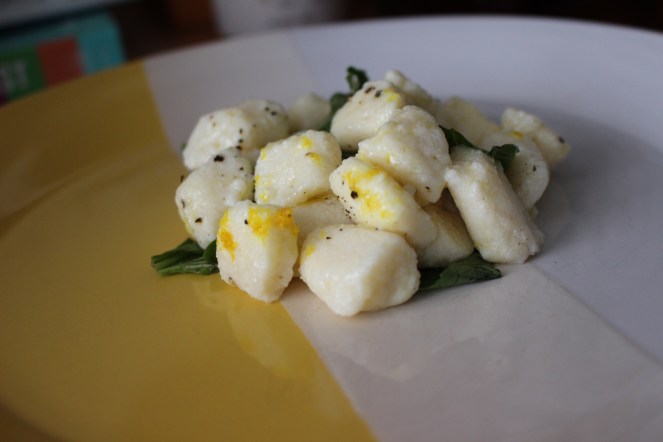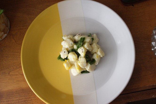 I started with the gnocchi because I simply couldn’t wait. The method was simple and straightforward; the ingredients were quintessentially Italian (olive oil, lemon, basil, ricotta…YES), and there’s a little bit of whimsy in cramming homemade dough into a ziplock bag, cutting off the corner, and pretending you’re an experienced chef as you watch delicate dollops glide into a steaming pot of water and become soft pillows of goodness, plump with possibility.