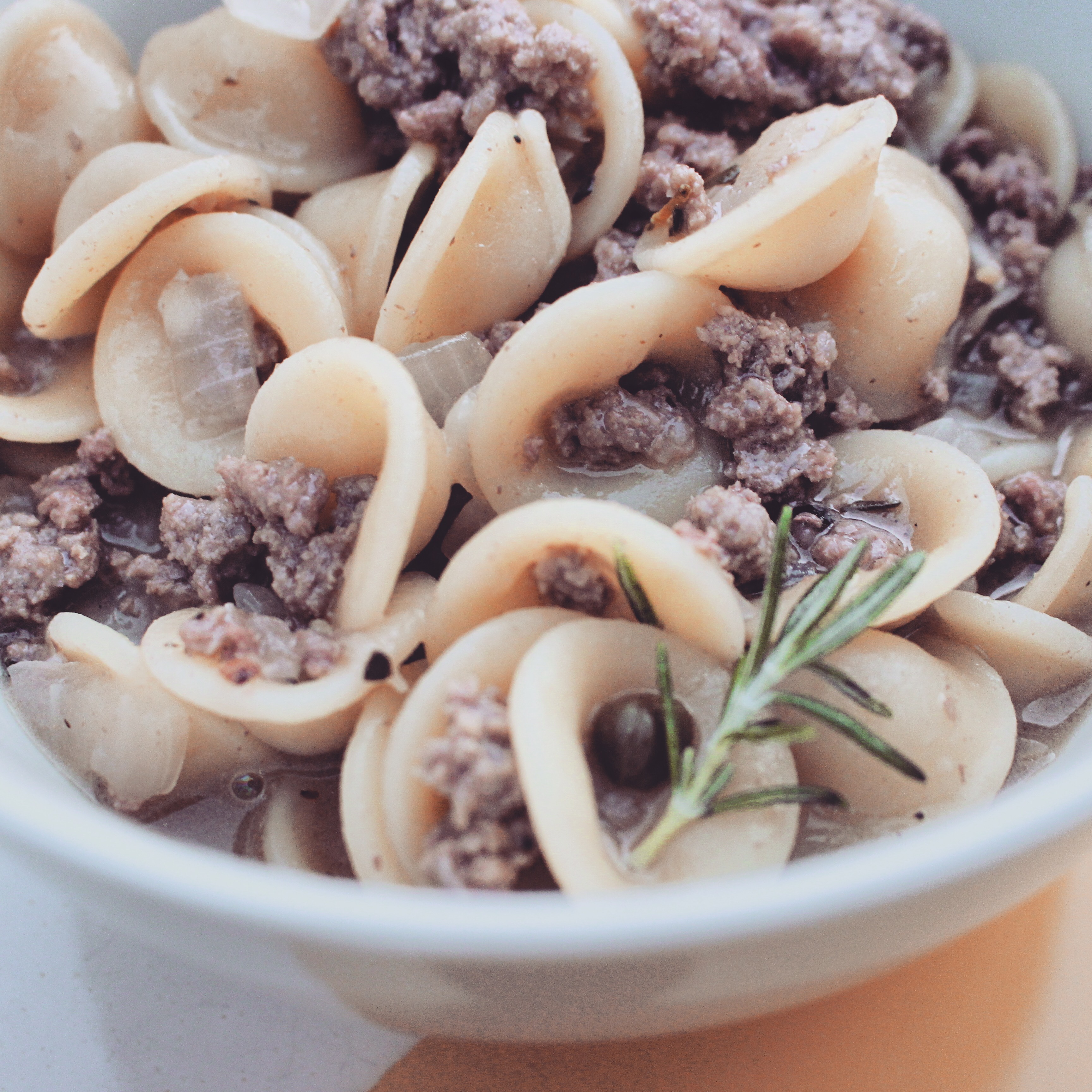 The female members of my immediately family were in town this past weekend to help me find a wedding dress. Ava, the older of my two younger sisters, arrived early, so we drank wine and made my mom a belated birthday cake and whipped up a big batch of orecchiette: little pasta “ears” swimming in a ragu of meat and white wine and capers and garlic. We salted the water, we added the cheese last. We used our hands. We sat around a table, piping hot bowls of pasta under our chins, and I felt completely and entirely at ease. Recipe here.