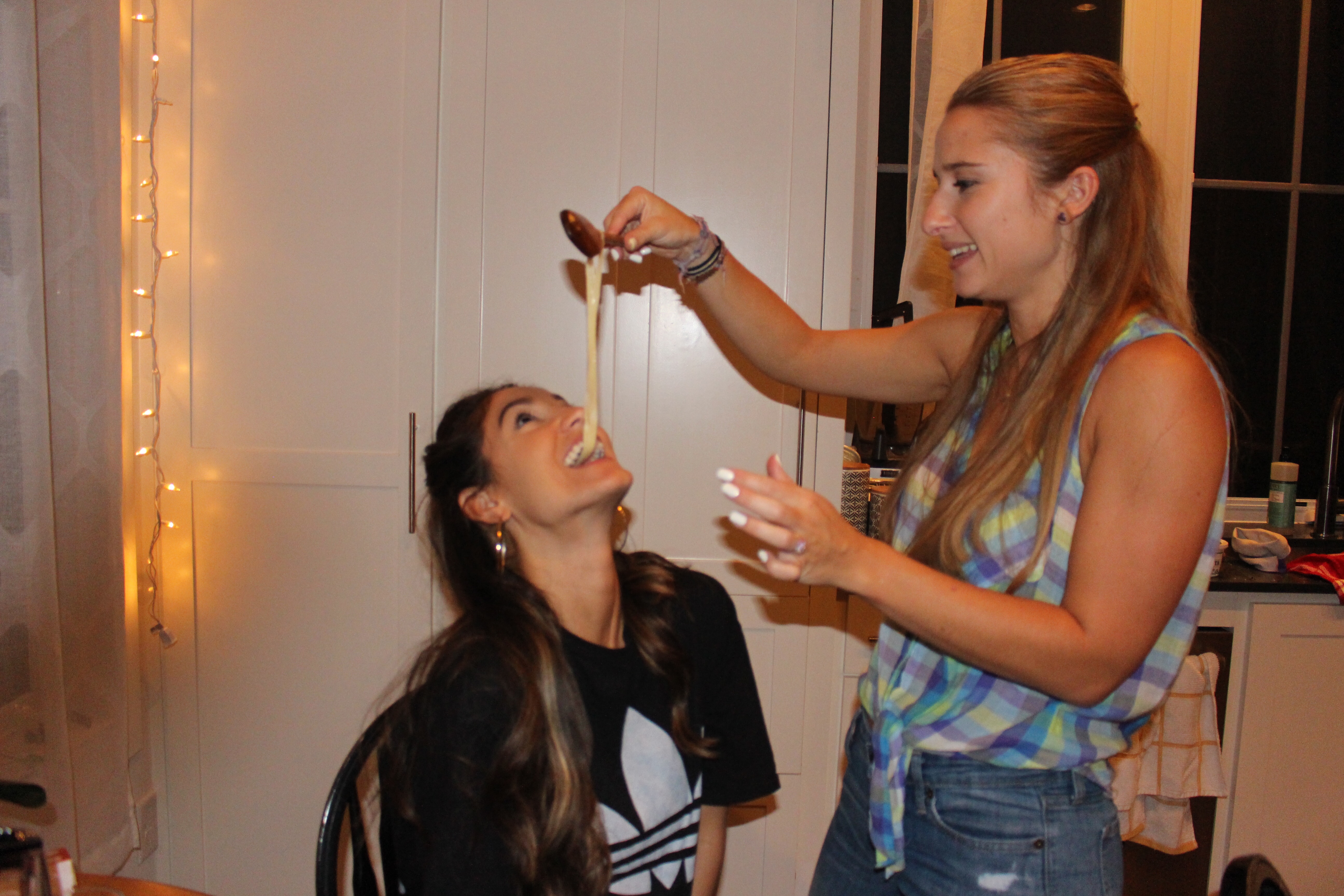 We gently grasped the long noodles as they emerged from the roller and laid them over the kitchen chairs, just like my great grandmother did. Though not new to Andrea, this was new to Sam too, and I found myself almost giddy at how natural it all felt — how familiar.