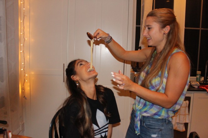 I spent this weekend with one of those friends, the same one I wrote about on this blog over a year ago, the one who ate pasta and bread and olive oil with me and left me feeling that I had just gained a true partner in (carb) crime. Andrea brought one of her friends, Sam, a woman I’ve known for a while but haven’t truly had the pleasure of friend-dating. And as Hurricane Harvey blew his way through Austin, we all gathered in my little house and made pasta. With our hands.